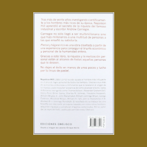 Un clásico para alcanzar la riqueza Tras más de veinte años investigando científicamente a los hombres más ricos de su época, Napoleon Hill aprendió el secreto de la riqueza del famoso industrial y escritor Andrew Carnegie. Carnegie no sólo llegó a ser multimillonario sino que hizo millonarios a una multitud de personas a las que enseñó su sabiduría. Piense y hágase rico es una obra diseñada a partir de una experiencia para conseguir el triunfo económico y personal de la humanidad entera. Gracias a este libro, la riqueza y la realización personal están al alcance de todas aquellas personas que lo deseen. No dejes el éxito en manos de unos pocos y lucha por tu trozo de pastel.